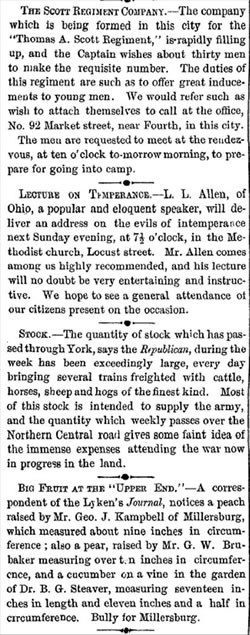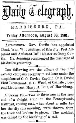 All items from the Pennsylvania Daily Telegraph, published in Harrisburg by George Bergner, 30 August 1861.