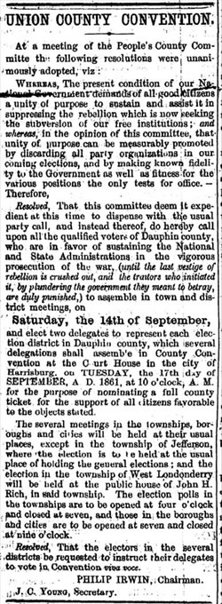 All items from the Pennsylvania Daily Telegraph, published in Harrisburg by George Bergner, 31 August 1861.
