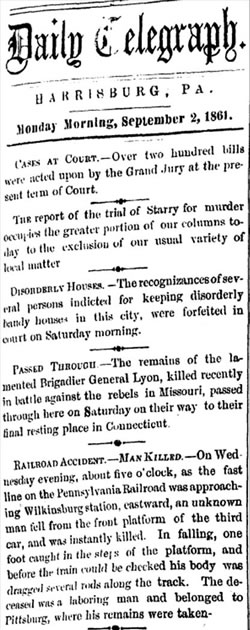 the Pennsylvania Daily Telegraph, 2 September 1861.