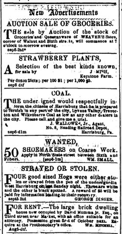 All items from the Pennsylvania Daily Telegraph, published in Harrisburg by George Bergner, 7 September 1861.