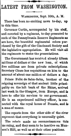 from the Pennsylvania Daily Telegraph, 11 September 1861.