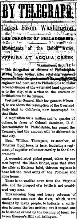 from the Pennsylvania Daily Telegraph, 12 September 1861.