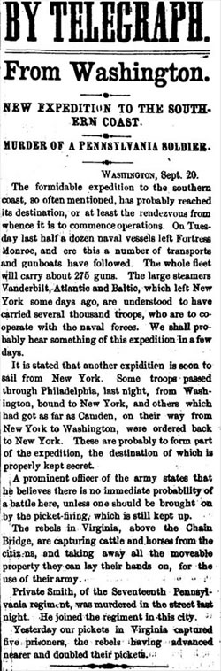 the Pennsylvania Daily Telegraph, 21 September 1861.